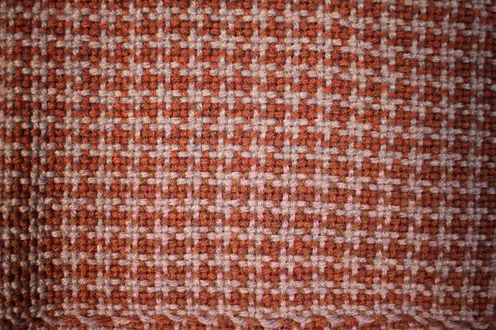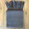 A 64 x 7 inch scarf made by John in May 2021 with some Peruvian highland wool and some Alpaca/tencil blend that was a gift from Christine’s sister. Took around 6 hours of warping and weaving and stitching.